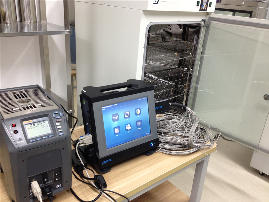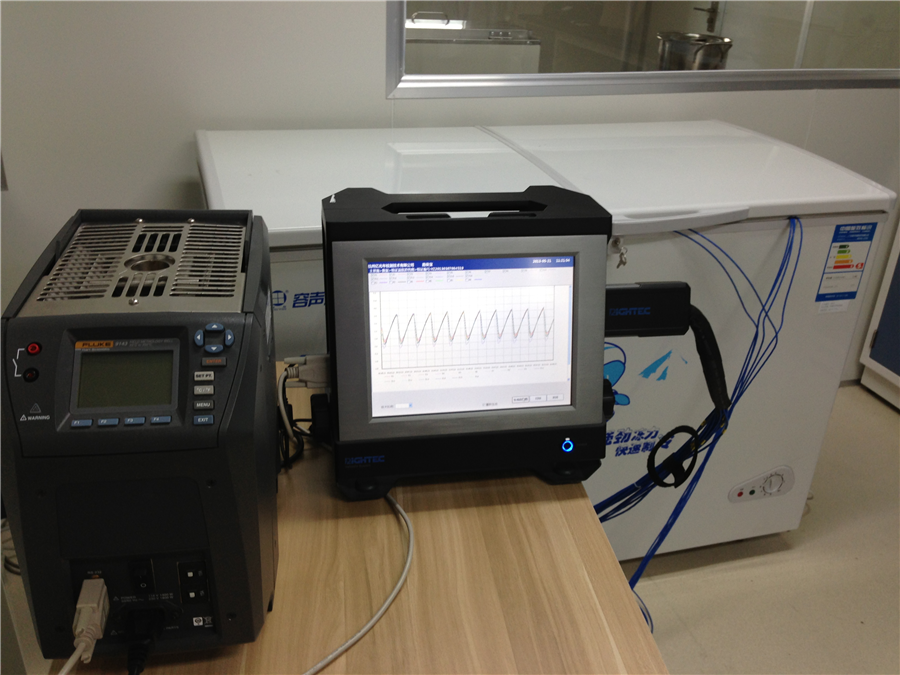 將校準過的探頭與該設備內部的溫度探頭綁在一起,進行比對,設備顯示的溫度與溫度驗證儀檢測的溫度的誤差在允許范圍內。